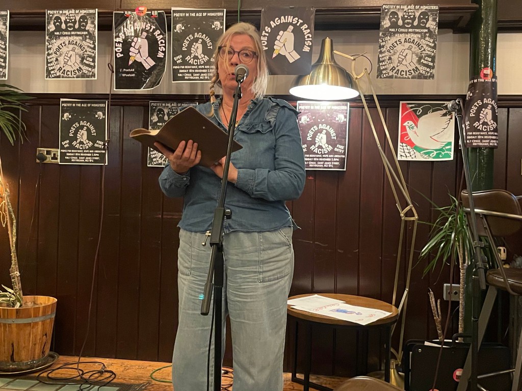 The monsters exposed in contributions from poets included the political leaders who continue to scapegoat immigrants and refugees fleeing war and oppression in small boats. It was great to see so many poets speaking up against racism in a climate where Fascist groups have been at the heart of attacks on hotels for refugees in the UK over the summer. Stand up to Racism (SUTR) have been organising effective counter demonstrations involving local community groups to counter the violence and hate. A number of poets exposed the racist nature of the recent far right flag campaign by reclaiming our flags of struggle.